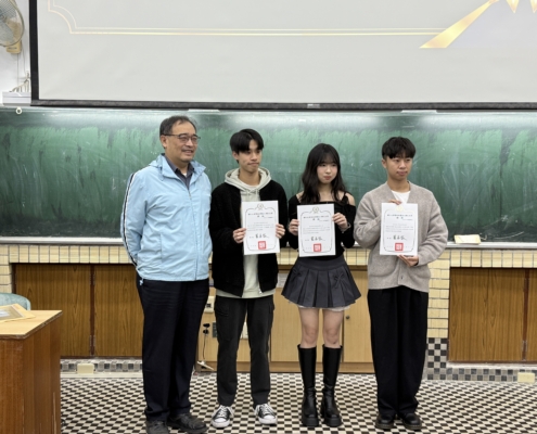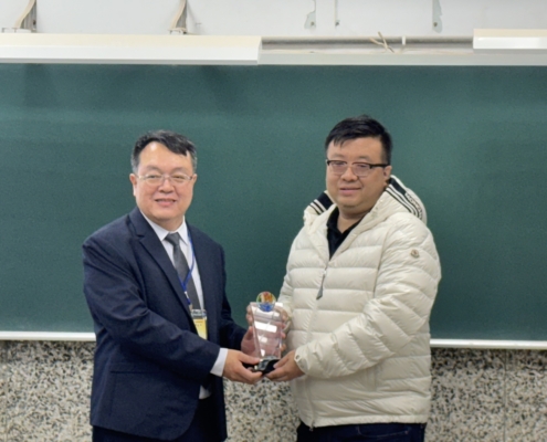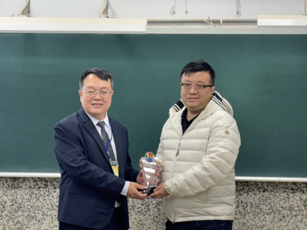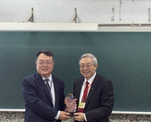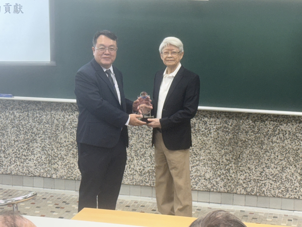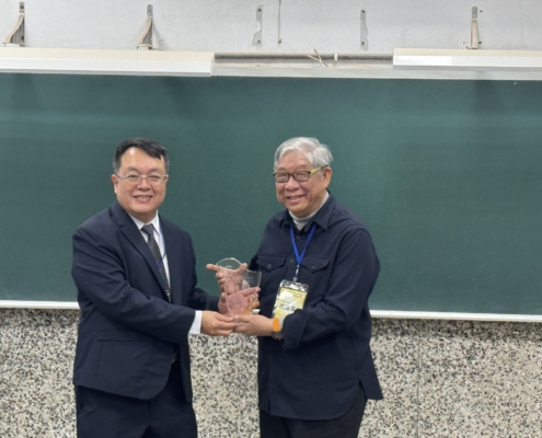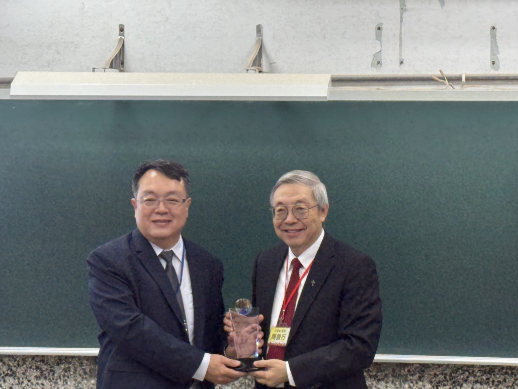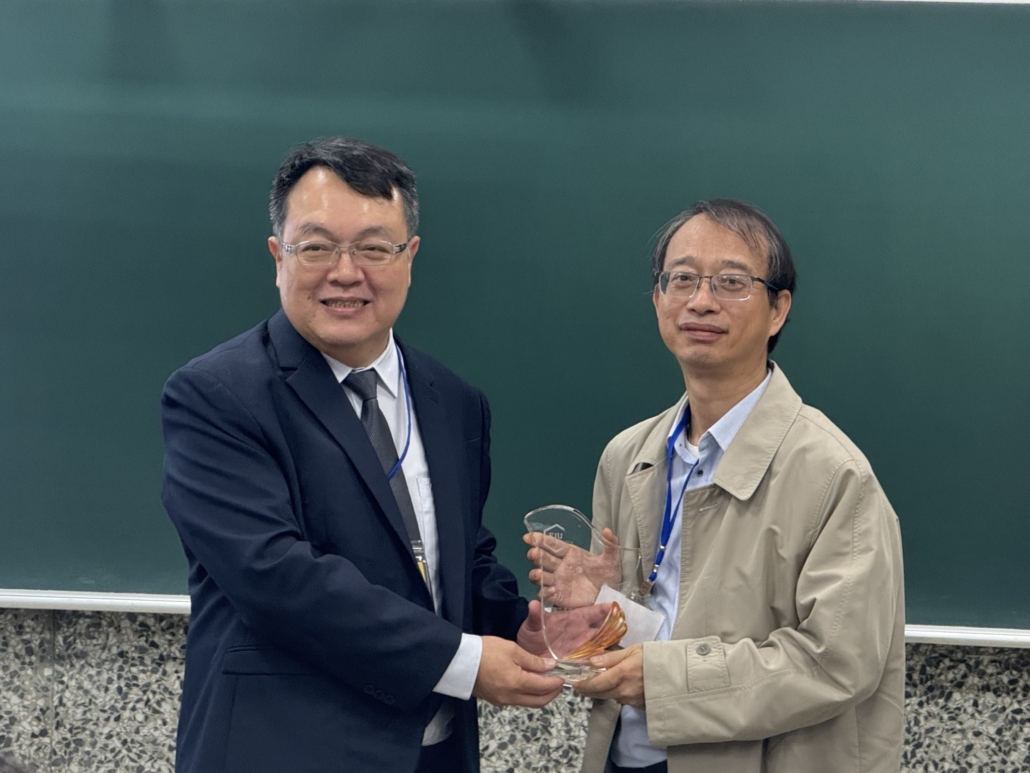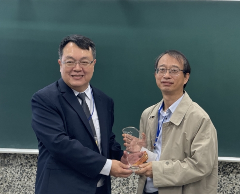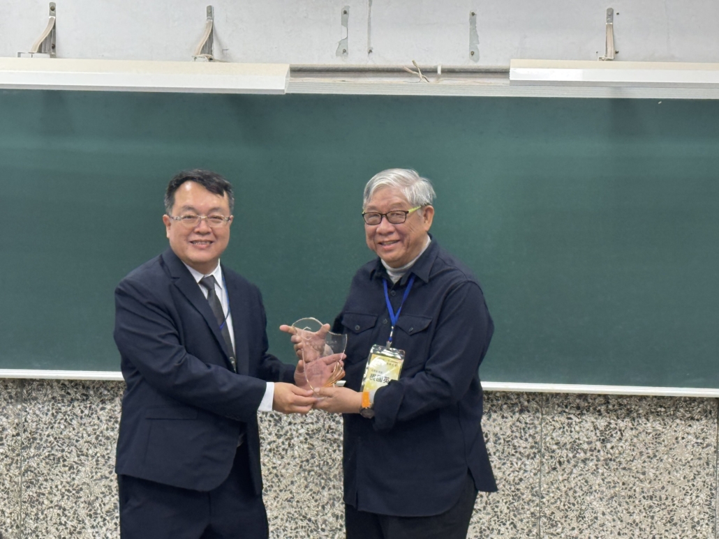 中間短暫的空檔,王元凱院長代表學校頒發教育部銀質獎於予周春雄系友,李慧玲主任對持續鼓勵支持本系的謝正輝系友、陳志強系友及友和貿易股份公司頒發感謝狀。