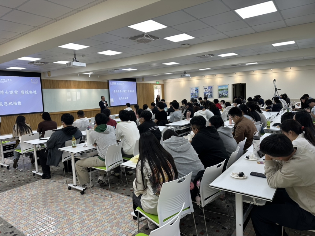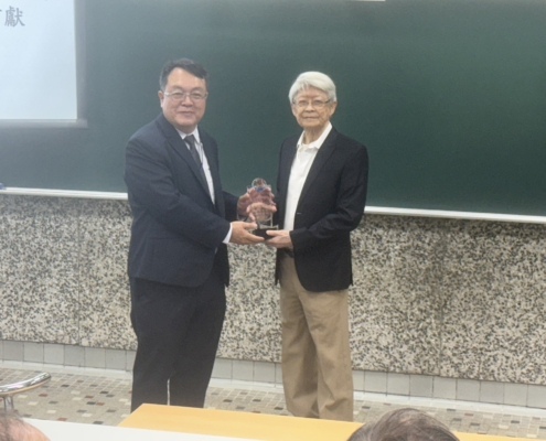 由本年度傑出校友第九屆周春雄以「機會不是自然發生,是創造出來的-四十年高分子材料開發之旅的啟示Opportunities don’t happen, you can create them. What inspired a Forty-year Material Development journey」娓娓敘述在新化合物的發想與創作過程。