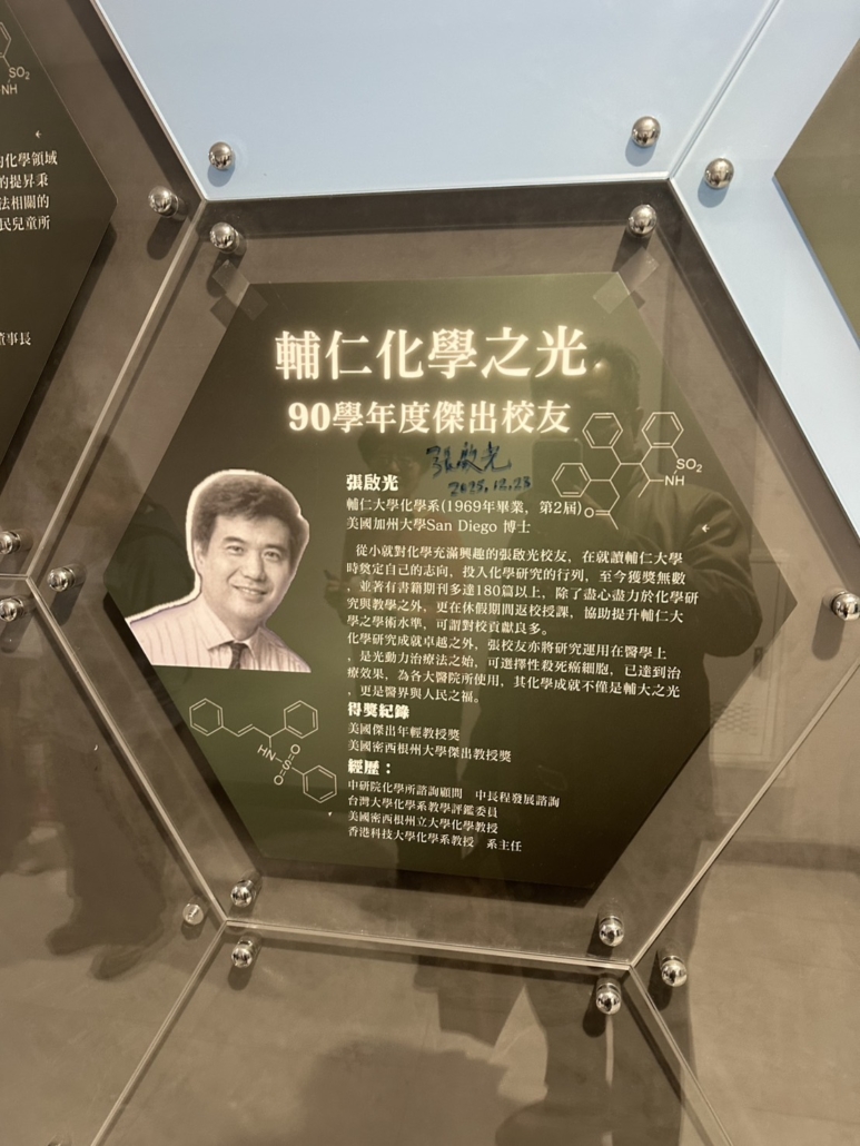 楊欣晉博士(Dr. Hsinjin Edwin Yang),1976年畢業於輔仁大學化學系,為化學系第九屆系友,1985年畢業於美國高分子領域著名學校The University of Massachusetts at Amherst 高分子科學與工程博士。曾於Univ. of Missouri at Kansas City 兼任教授,其產業及學術經歷豐富,曾在Kodak、Eastman Chemical、Essilor、Baxter 和UL 等國際知名公司,以及他自己的Pioneer Scientific Solutions的顧問公司擁有30年的成功技術領導和管理經驗。2019年獲得美國塑膠工程協會院士(Fellow, Society of Plastics Engineers (SPE)),塑膠工程師學會(SPE) 是一個國際性組織,也是世界上最大的塑膠專業人士學會,會員分佈在84個國家,楊欣晉院士可以說是台灣之光!美國塑膠工程協會院士是國際學術及產業界非常榮耀的成就。