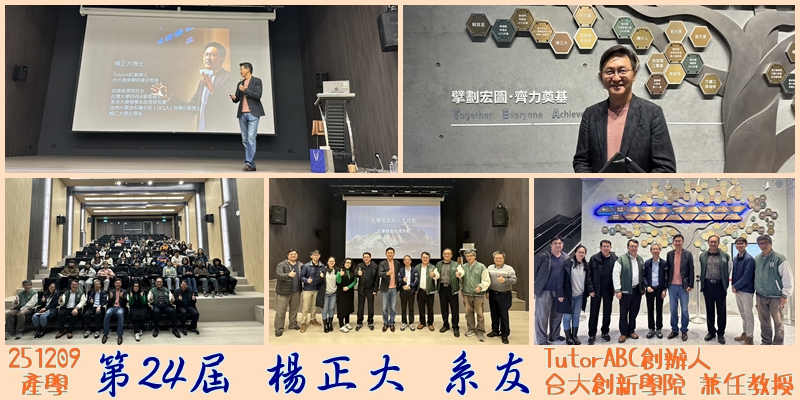 | 12/9 | 24 | 楊正大 | TutorABC創辦人 台大創新學院 兼任教授 |