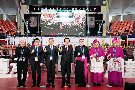 天主教輔仁大學自1925年創校滿百年,12月6日於中美堂舉行感恩慶祝大會,賴清德總統親自蒞臨,不只參加祈福禮,還聆聽教宗良十四世(Pope Leo XIV)的賀電宣讀,同時致詞肯定天主教會的貢獻和輔大教育成果。